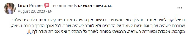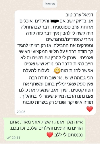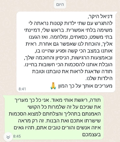 זו כל המטרה של הגישור. לחזור לתקשורת. להבין שיש בצד השני שותף או שותפה, גם אם זה לא מרגיש ככה כרגע. המטרה שלנו היא לגשר על הפערים והמחלוקות שיש היום, וליצור עתיד משותף, גם בשביל הילדים, אבל גם בשבילכם – כדי שתוכלו לשים את המשקעים מאחור ולהמשיך קדימה. בדיוק בשביל זה צרפתי לחבילת הגישור עוד שתי פגישות ללא עלות עם יועצת זוגית שמתמחה בתקשורת מקרבת.